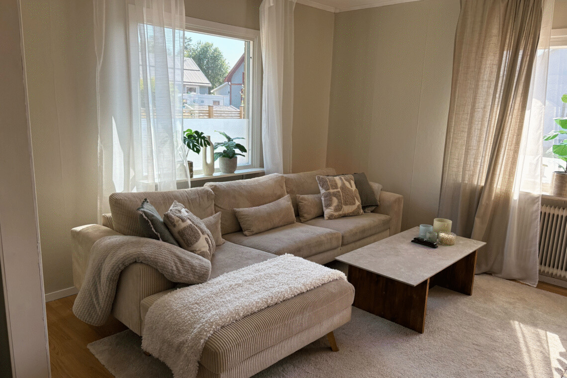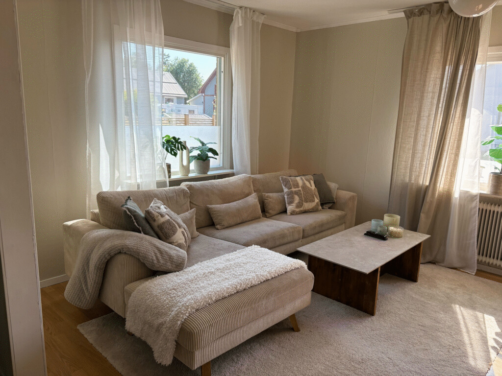 Each bedroom is thoughtfully decorated, featuring quality curtains and a calm atmosphere for restful nights. The living spaces flow effortlessly out to a private garden and inviting terrace – ideal for enjoying a morning coffee or an evening glass of wine.