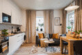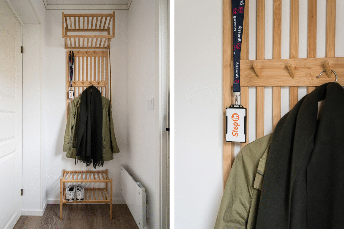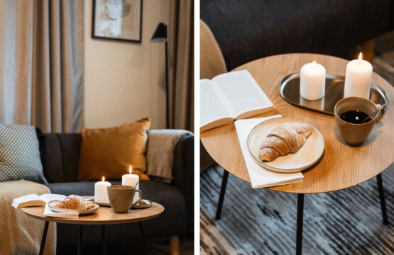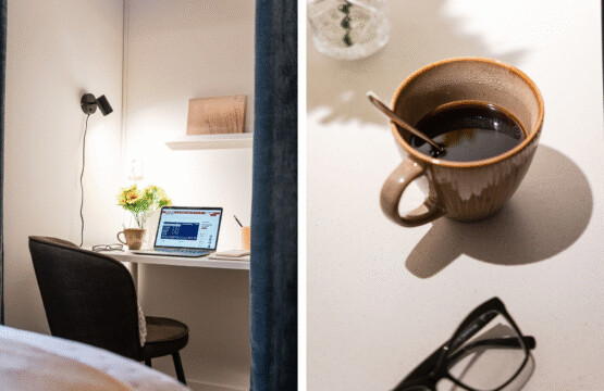 The bedroom features a comfortable 120 cm single bed, and the apartment is fully equipped for both work and relaxation. The calm, homely atmosphere and private courtyard setting create the perfect environment for longer stays, with access to two outdoor seating areas — ideal for morning coffee or an evening break.